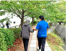 体操で体をほぐした後、近くの公園まで散歩に出かけることも。季節の花や鳥の声に触れながら、自然を感じるひとときです。